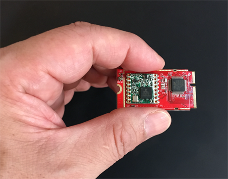 上述LoRa STモジュールを MODBUS LoRa BrdigeのPCB上 M.2コネクター(右上部分)部分にそのまま装着が可能でMODBUSとLoRa通信をするための遠隔センサーモジュール。香港政府の公共施設に大量受注が決まっているとDraginoは説明していました。