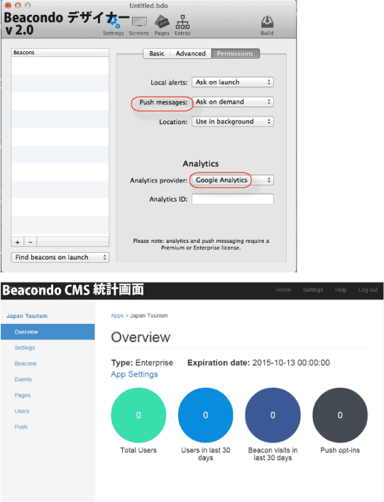 ・ビーコン分析機能 Google Analytics および Flurry選択可能